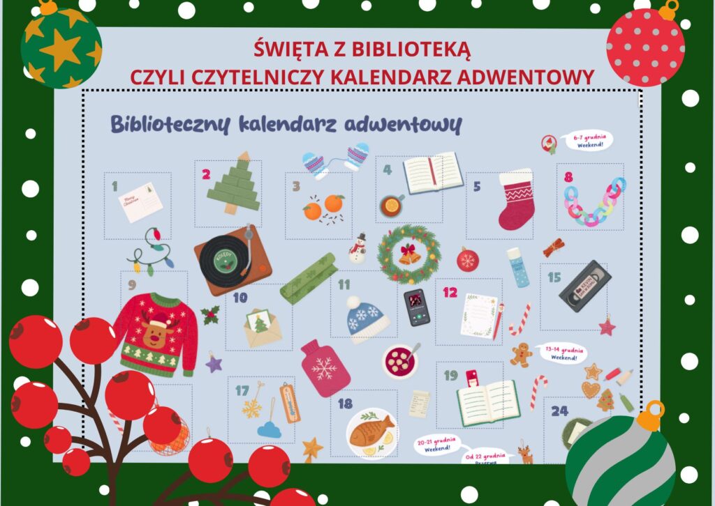 ŚWIĘTA Z BIBLIOTEKĄ, CZYLI CZYTELNICZY KALENDARZ ADWENTOWYDrodzy Uczniowie! Rozpoczynamy wyjątkowe odliczanie do Świąt – w zupełnie książkowym stylu! Każdego dnia Czytaj więcej...